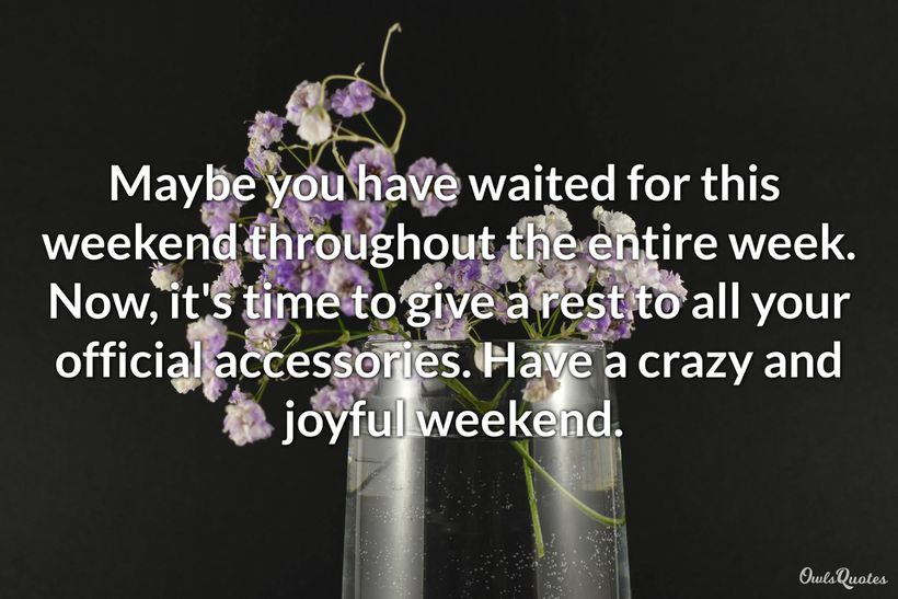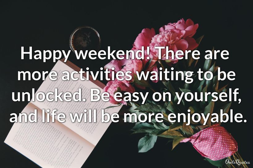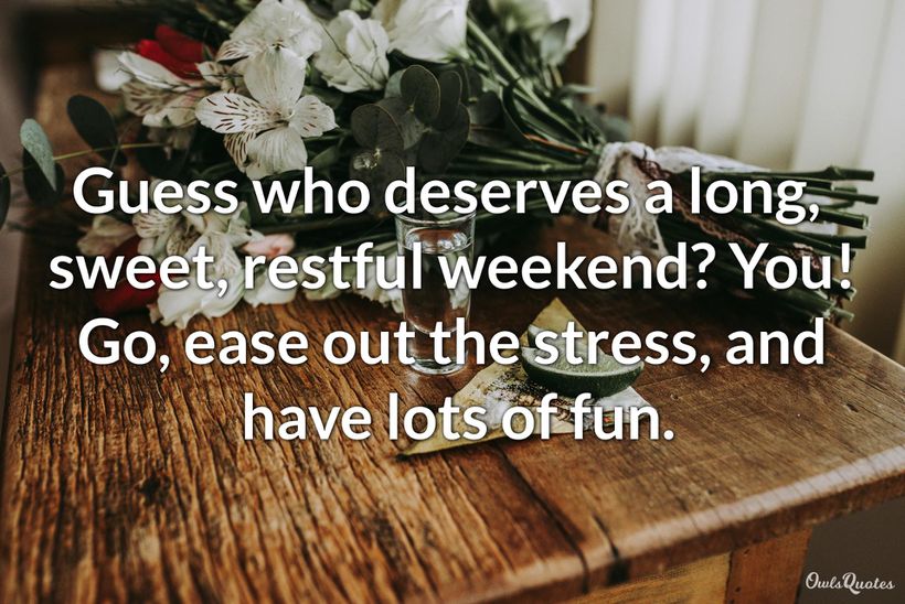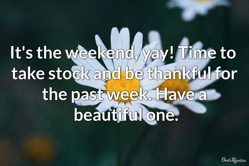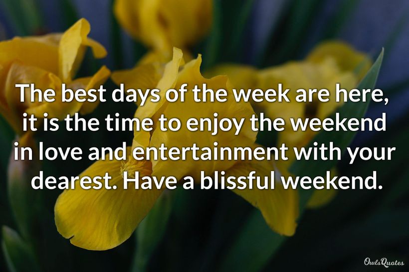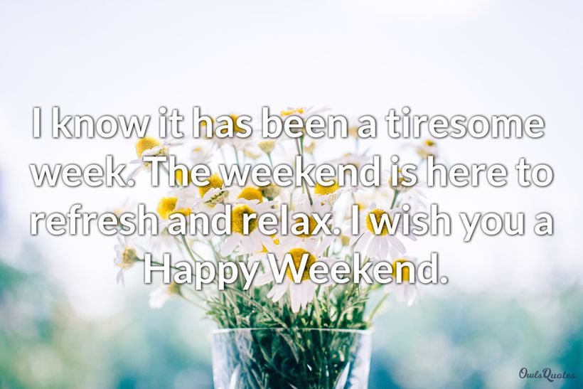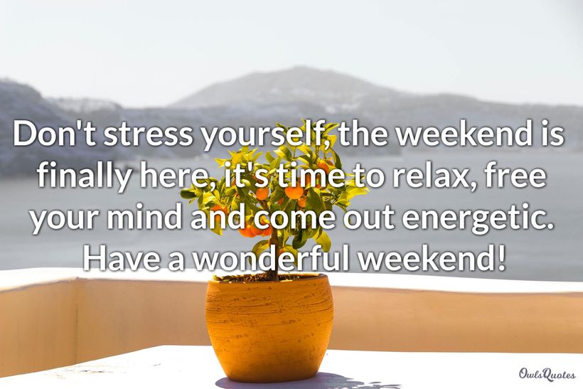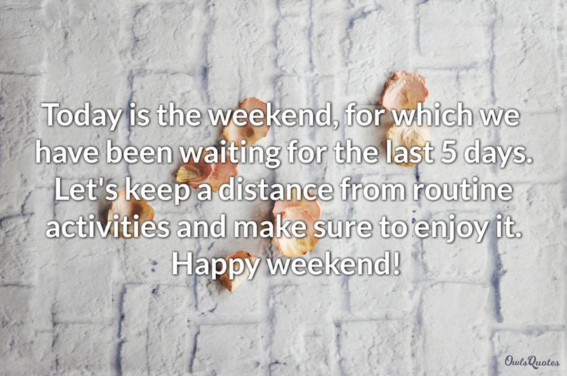 The weekend gives us a break from everyday routines. A happy weekend can help to relieve stress and recover energy. Therefore, sending a happy weekend message is something that can instantly boost the excitement around an upcoming weekend, and our collection has a good quote for any situation.