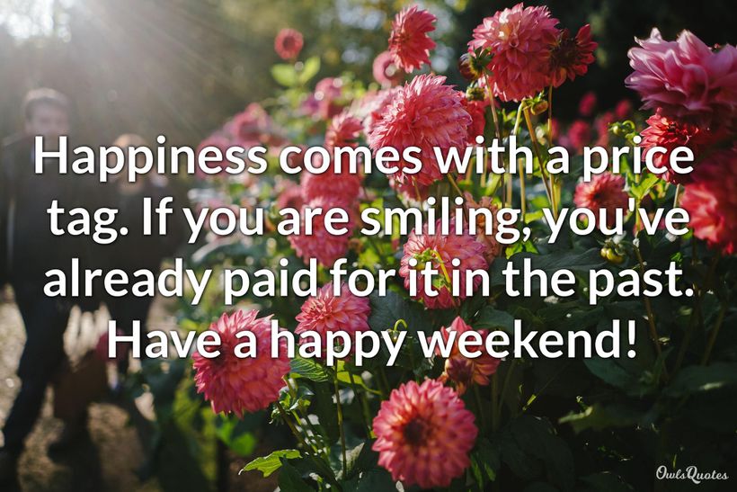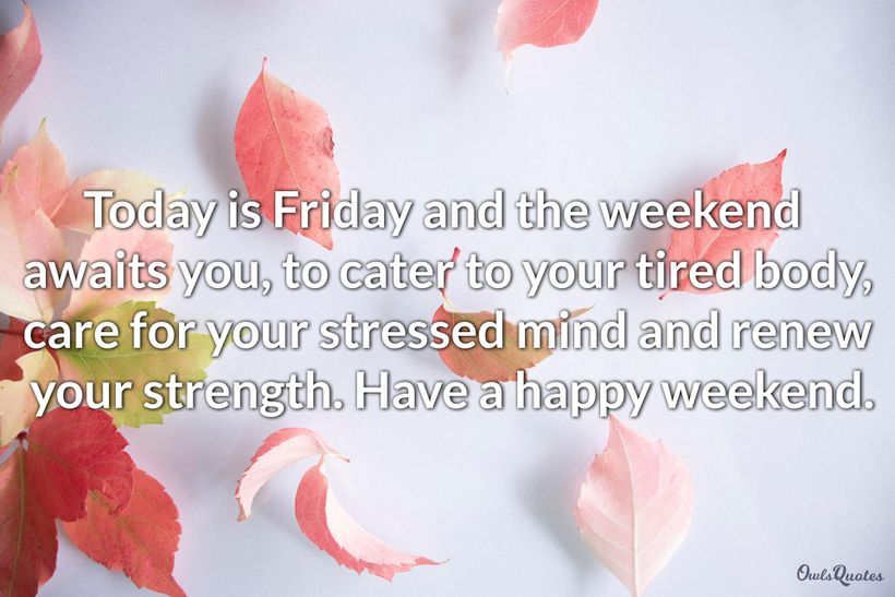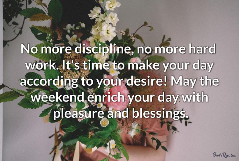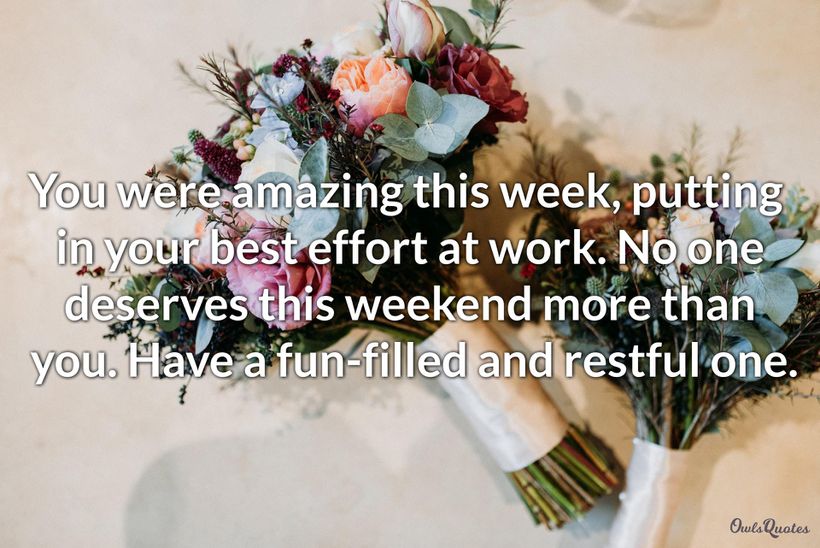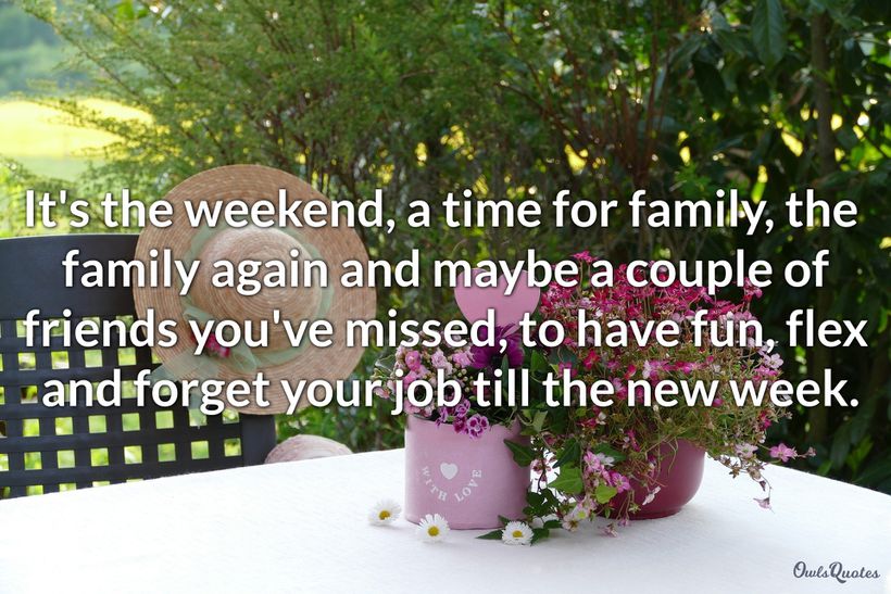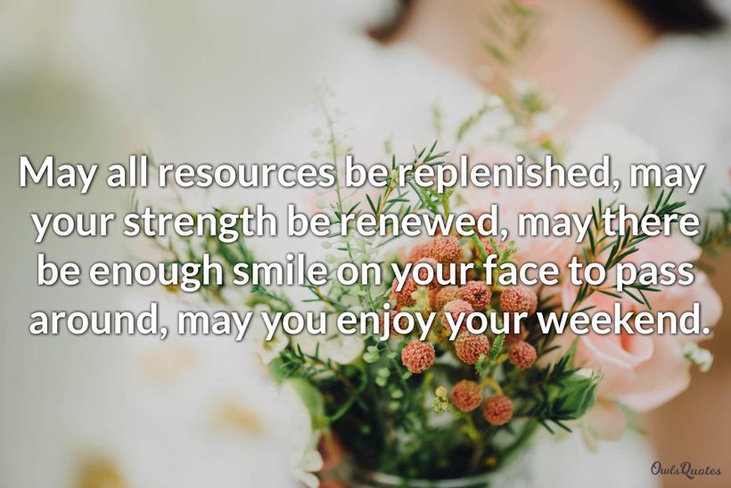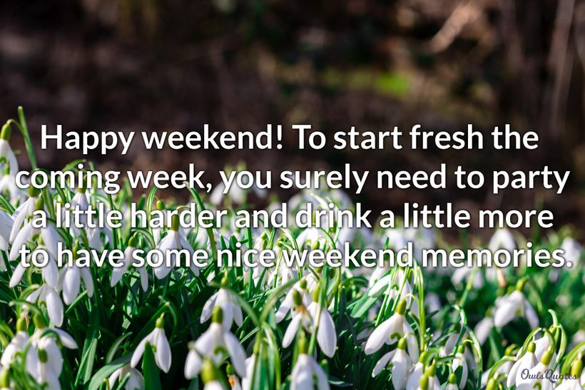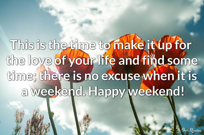 The weekend gives us a break from everyday routines. A happy weekend can help to relieve stress and recover energy. Therefore, sending a happy weekend message is something that can instantly boost the excitement around an upcoming weekend, and our collection has a good quote for any situation.